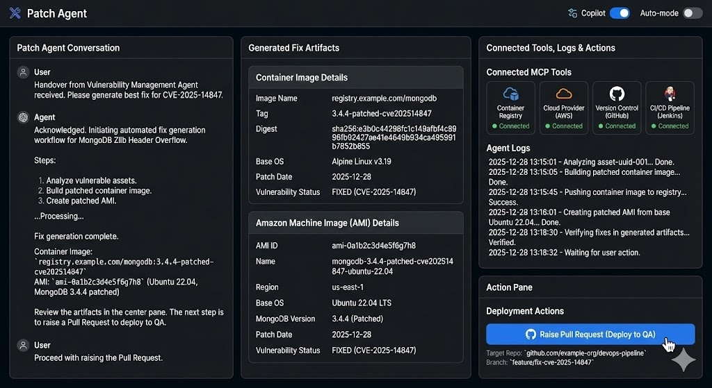 When remediation is required, the Patch Agent takes over. It automates the engineering work most teams still handle manually.